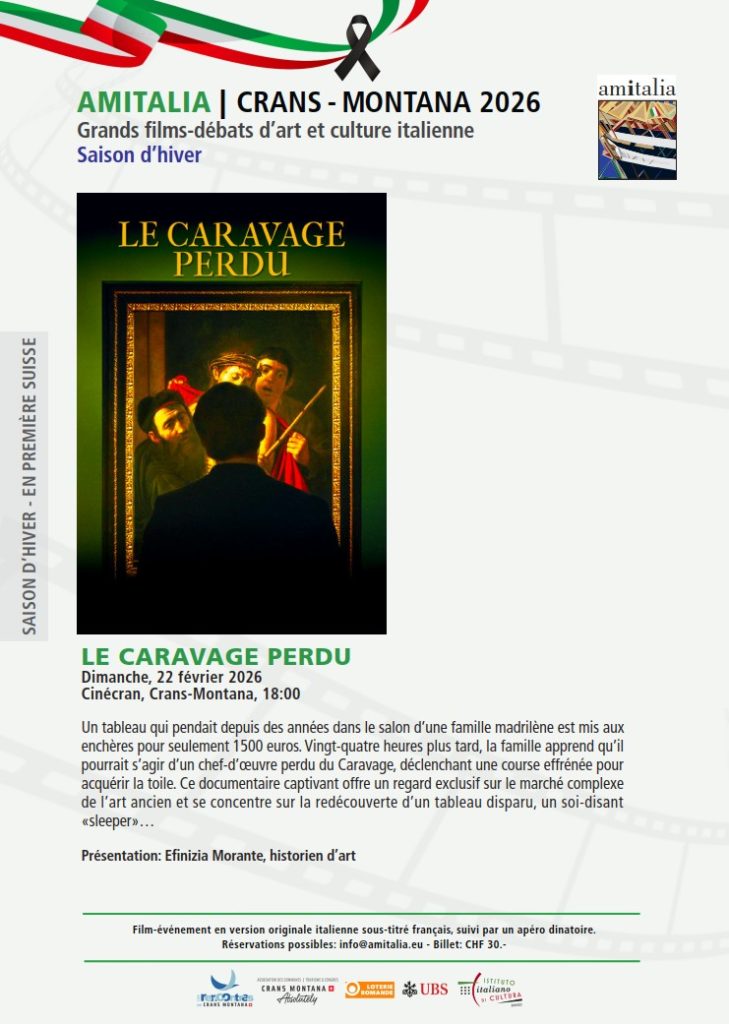 La projection du documentaire Le Caravage perdu aura lieu le dimanche 22 février 2026 à 18h, au Cinécran de Crans-Montana. Le film sera présenté en version originale italienne sous-titrée en français.