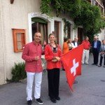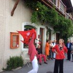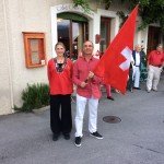 Lancer du drapeau suisse effectué lors de la fête nationale au café le Cher-Mignon :